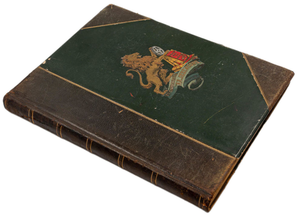 Сохранность – хорошая, небольшие потёртости и царапины переплёта, утрата небольших фрагментов кожи корешка, росчерки карандашом на отдельных страницах, «лисьи» пятна, тип. ошибка пагинации (во всех экз. книги — сбой пагинации после с. 86), паспарту частично отделено от листа.