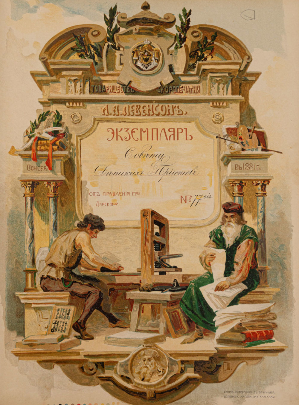 Основанное в 1881 г. Товарищество скоропечатни А.А. Левенсон в начале XX века было одним из самых передовых, технологичных и успешных книгопечатных заведений в Российской империи. За высокое качество своей продукции Товарищество неоднократно награждалось медалями высшего ранга на международных выставках, а в 1896 г. было удостоено звания Поставщика Двора Его Императорского Величества.