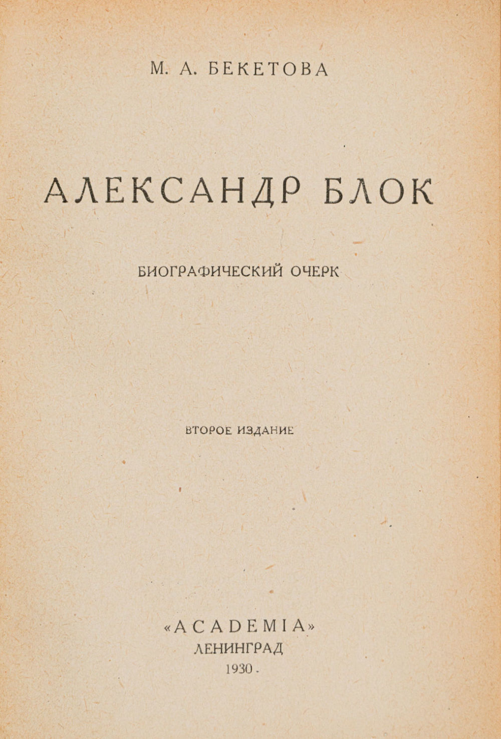 Биографический очерк. 2-е изд. Л.: Academia, 1930. – 321 с., [1] л. портр.: ил., портр.; 18×12 см.