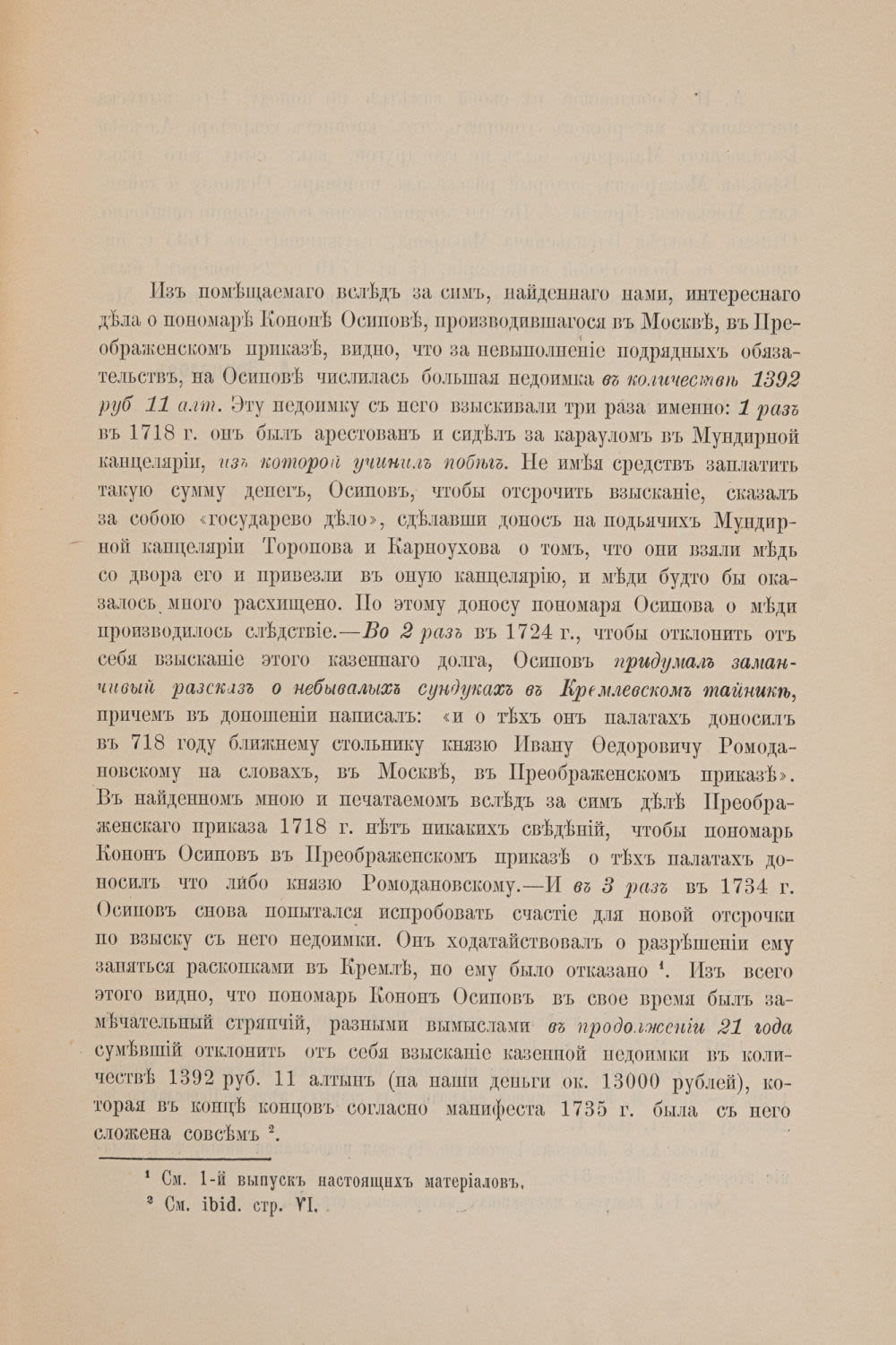 Вып. 2. Дело Преображенского приказа 1718 г. о пономаре Каноне Осипове. – 12 с.; 27,5×17,5 см.