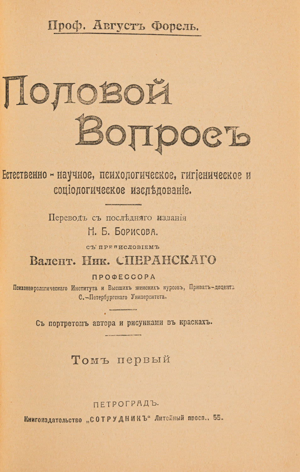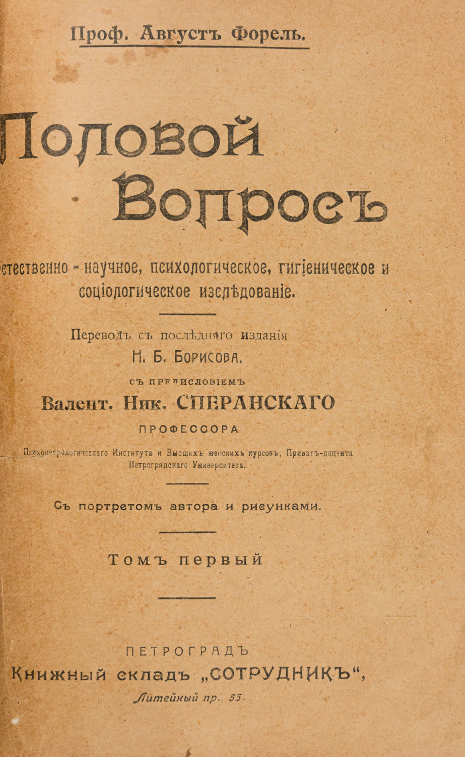 Естественно-научное, психологическое, гигиеническое и социологическое исследование. Петроград: Сотрудник, [1915].