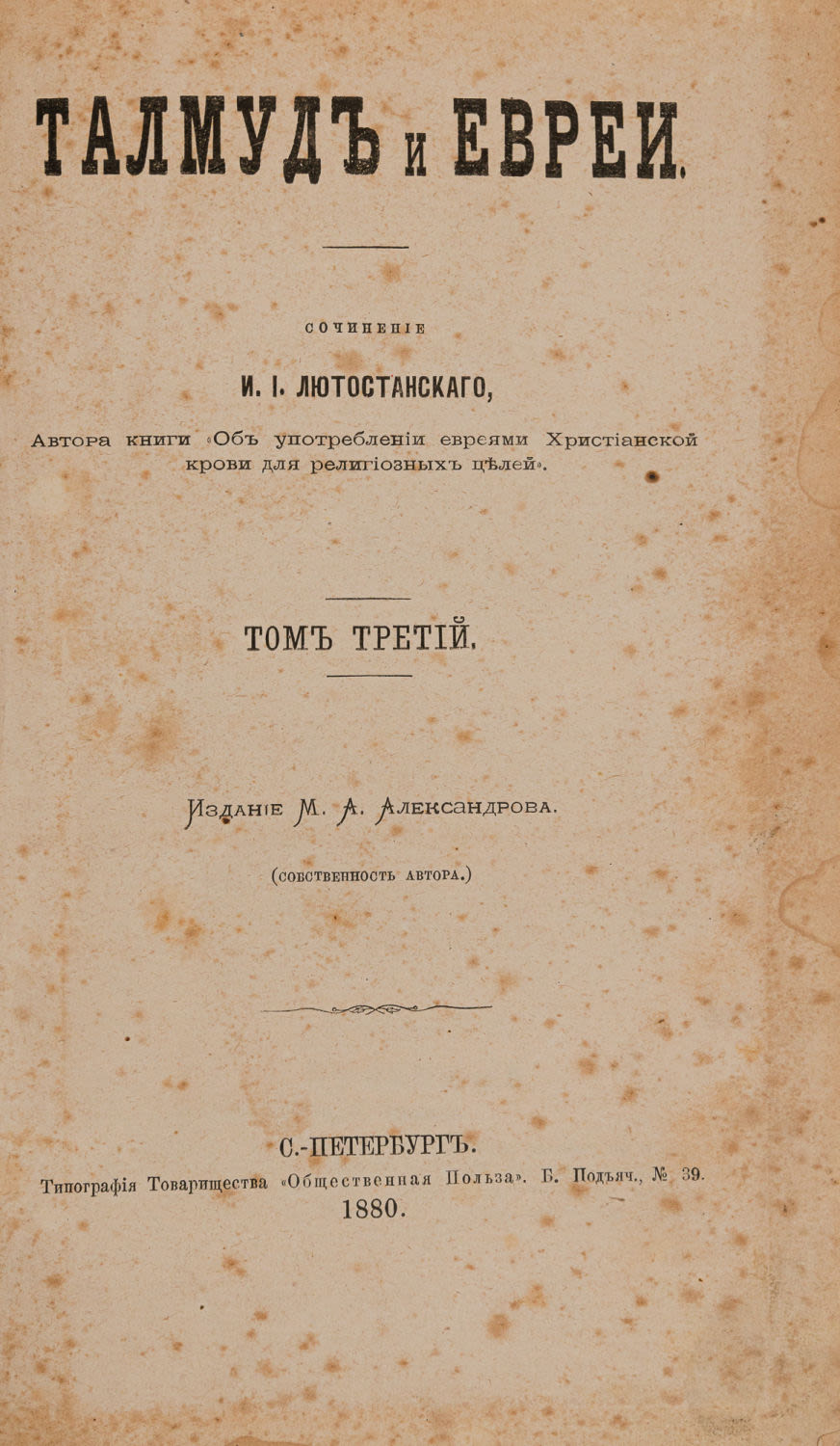 Ипполит Лютостанский (1835-1915) – русский публицист антисемитского толка, бывший католический ксёндз, после лишения сана перешедший в православие.
