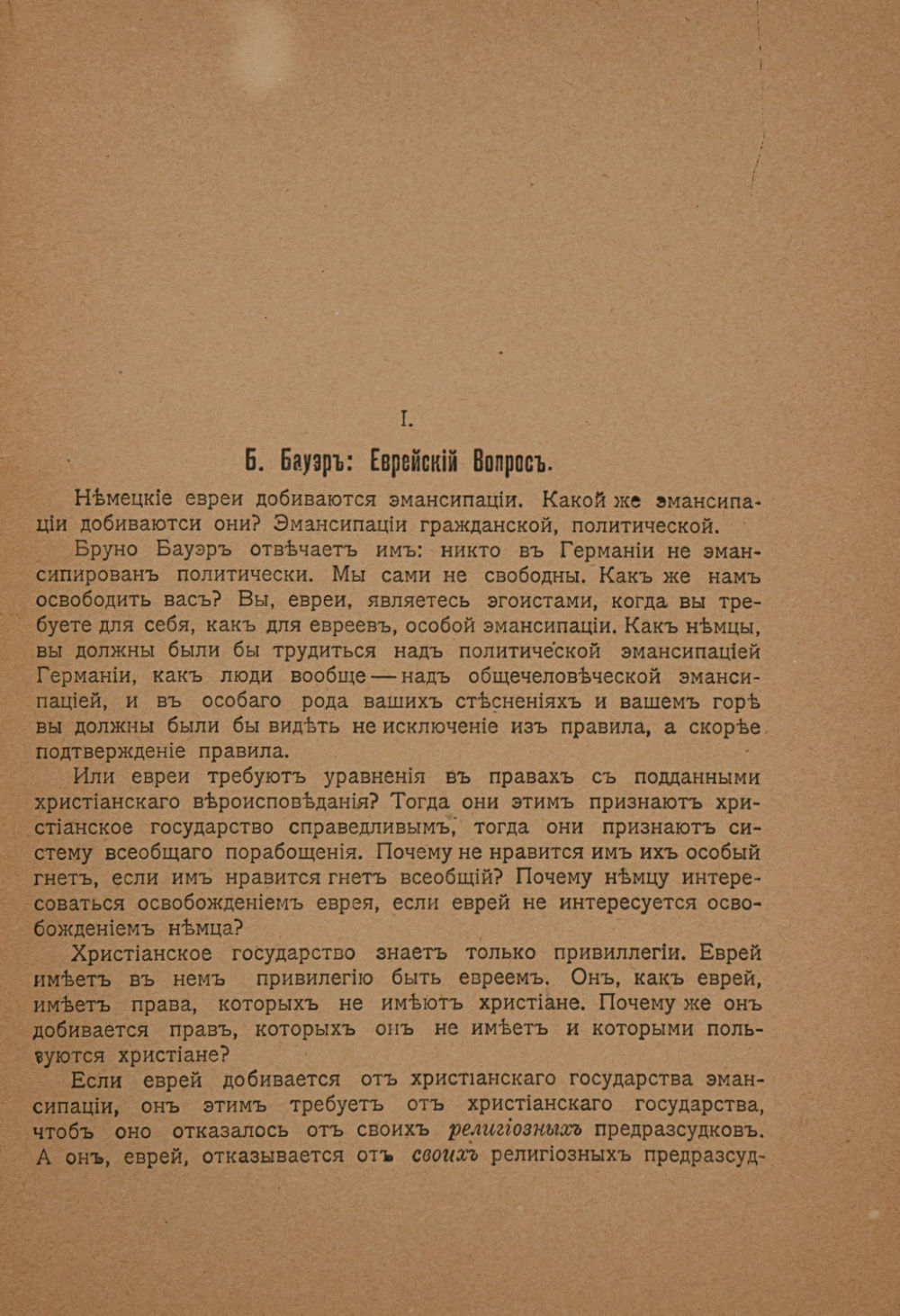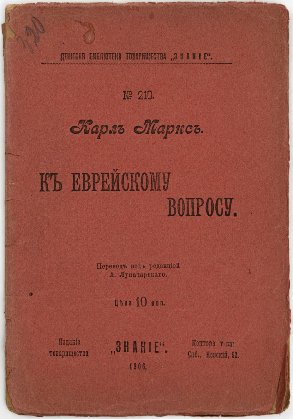 Маркс написал эту статью в 1843 г., и впервые она была опубликована в Париже в 1844 г. под немецким названием «Zur Judenfrage» в Deutsch–Französische Jahrbücher.