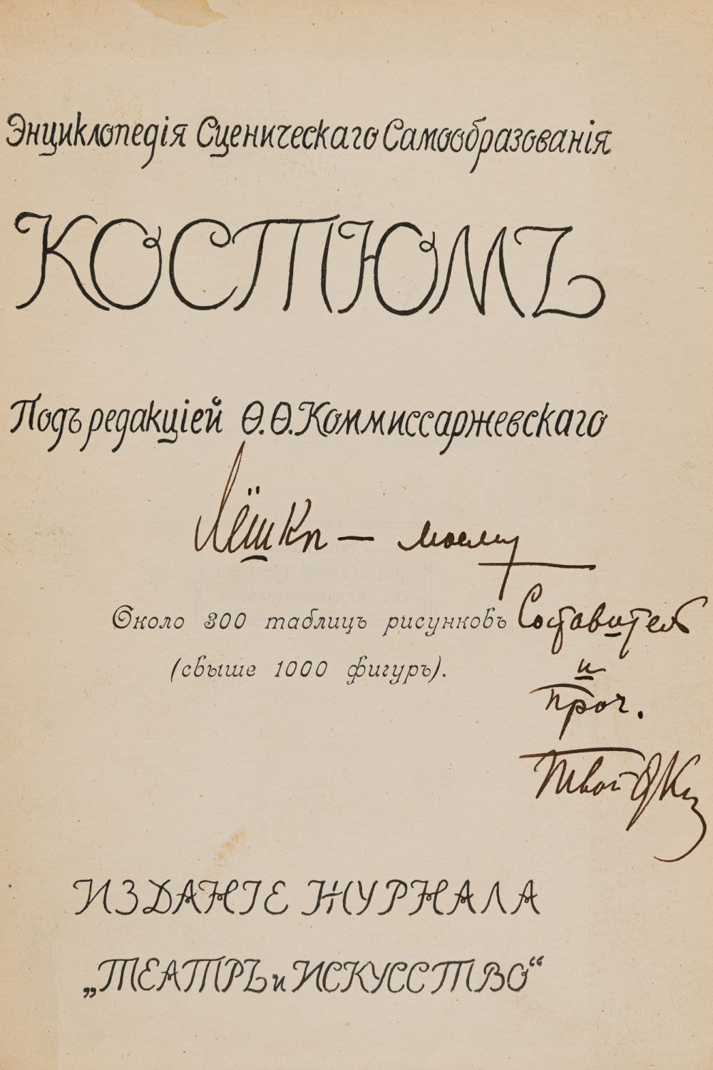 Подпись Федора Федоровича Комиссаржевского на титуле: «Лёшке – моему составителю и проч. Твой [подпись]».