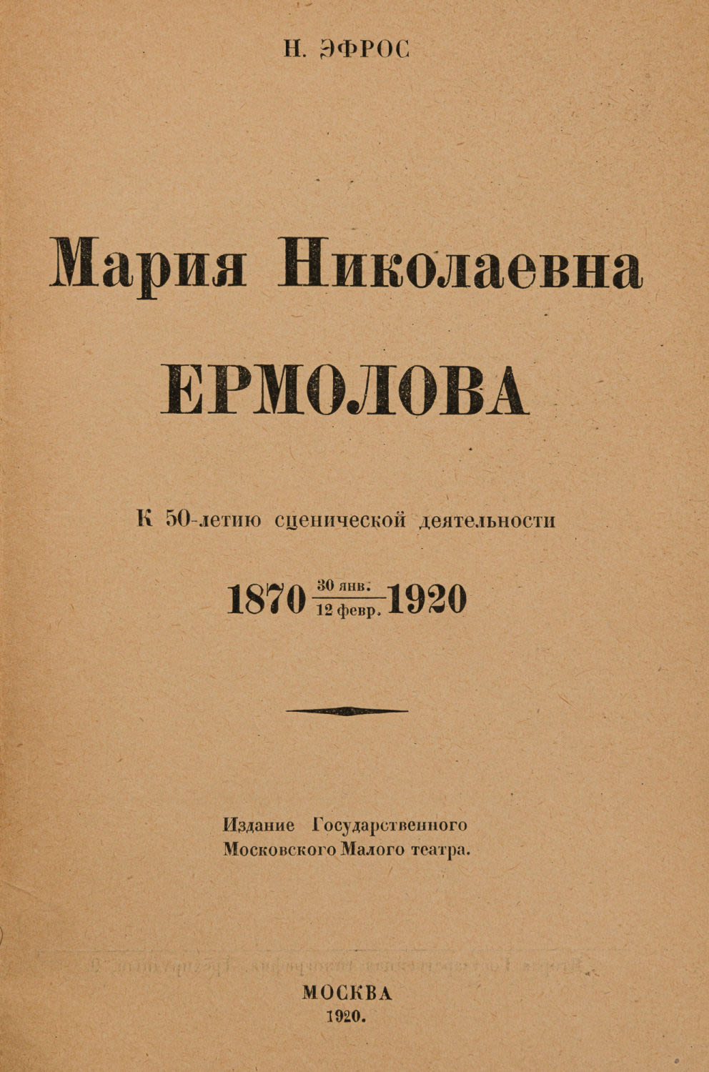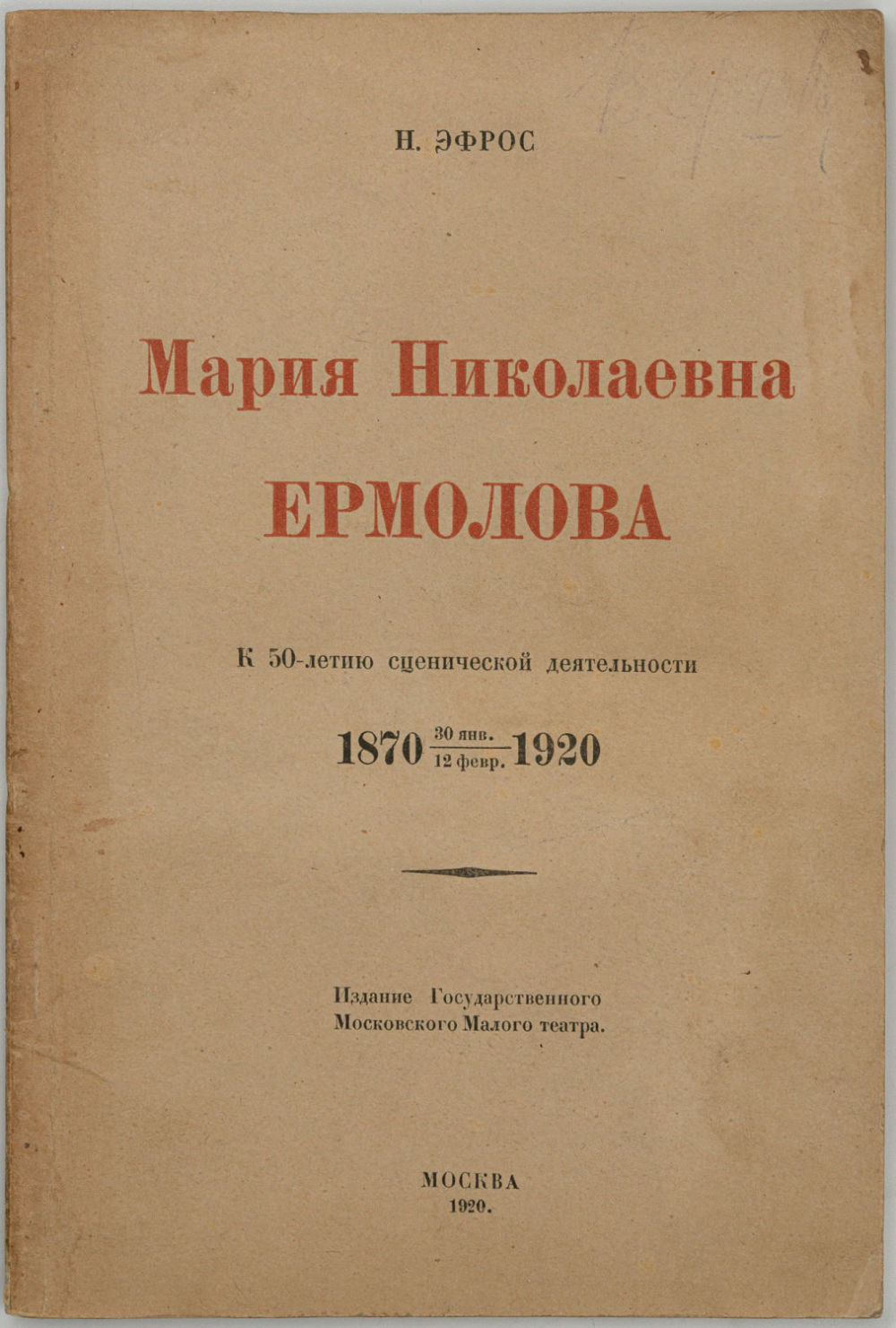 М.: Гос. Моск. малый театр, 1920. – 32 с., [2] л. портр.; 21,5х14,5 см.