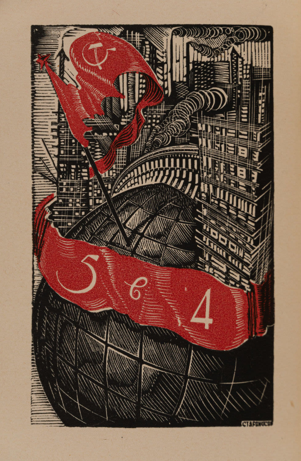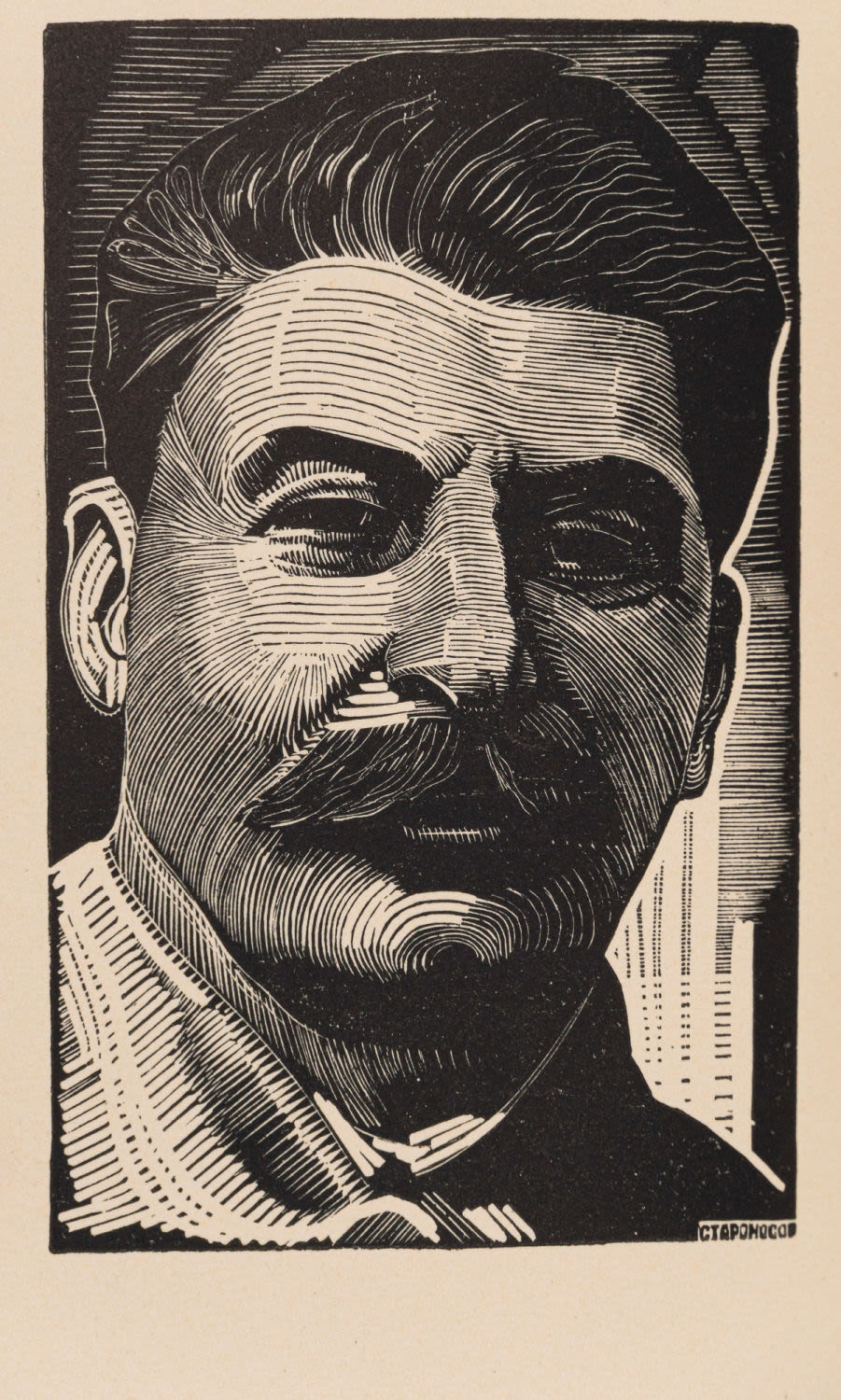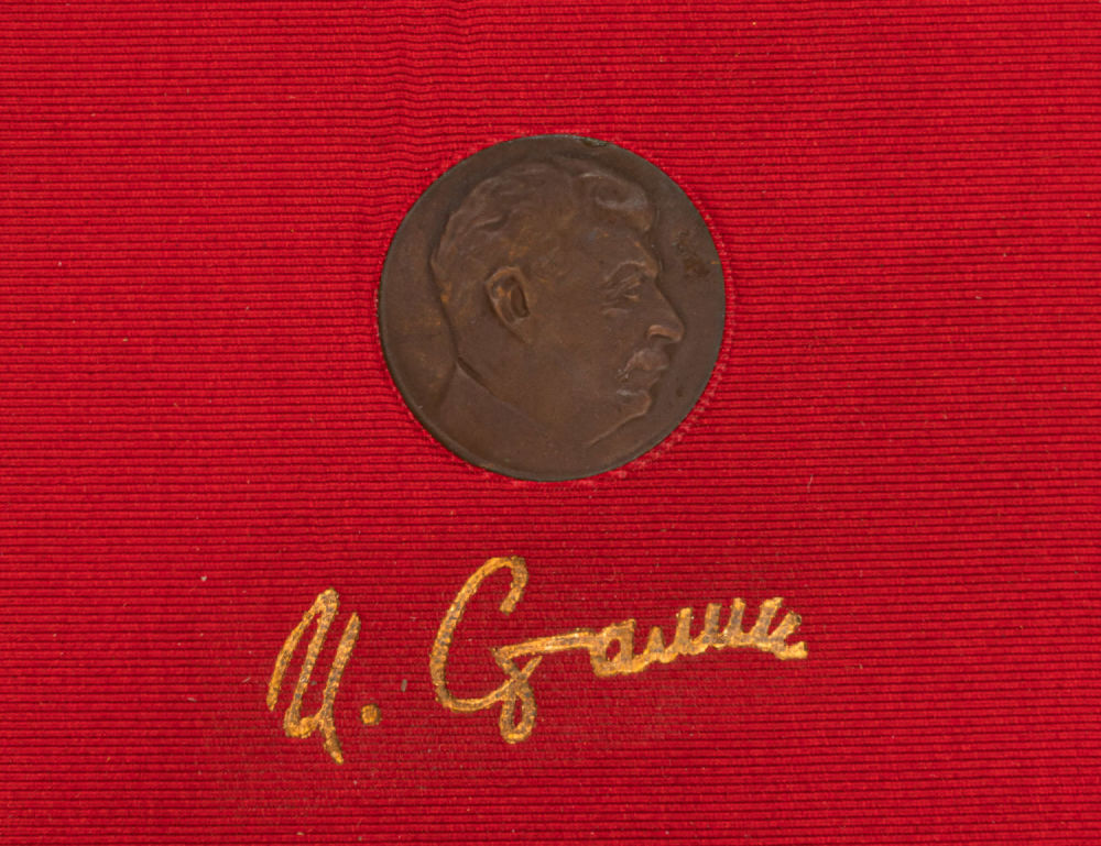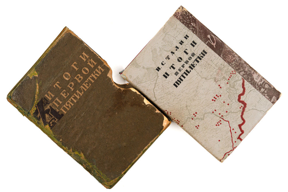 В шелковом издательском переплете с металлическим барельефом Сталина на передней крышке, в иллюстрированной суперобложке и издательском футляре.