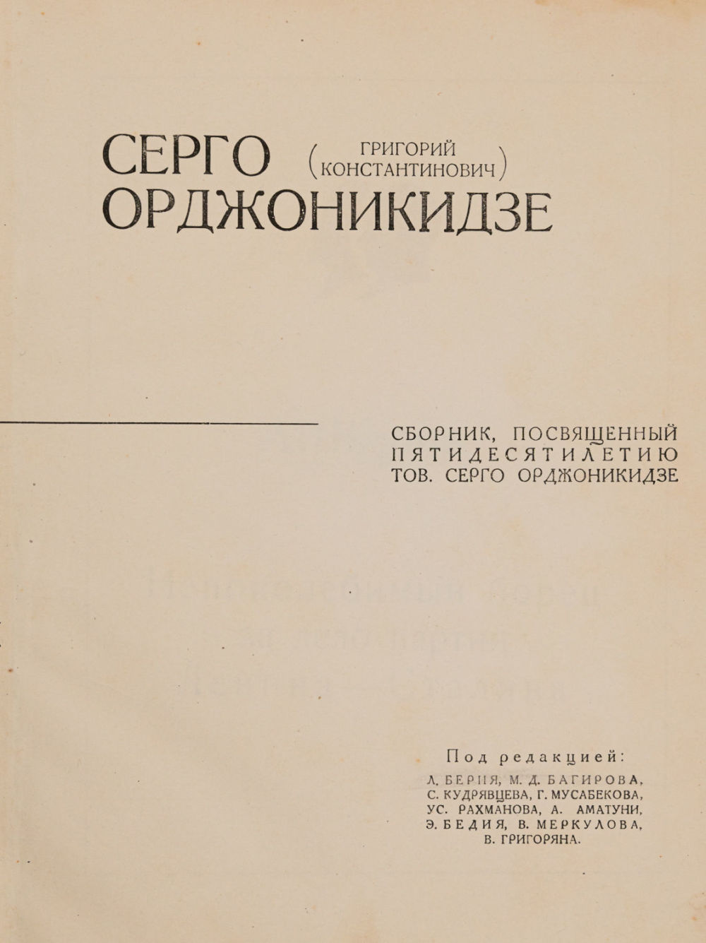 Под ред. Л. Берия, М. Д. Багирова и др. Тбилиси: Заря Востока, 1936. – [4], 203, [4] с., [17] л. ил., портр., факс.; 25,8х20,5 см.