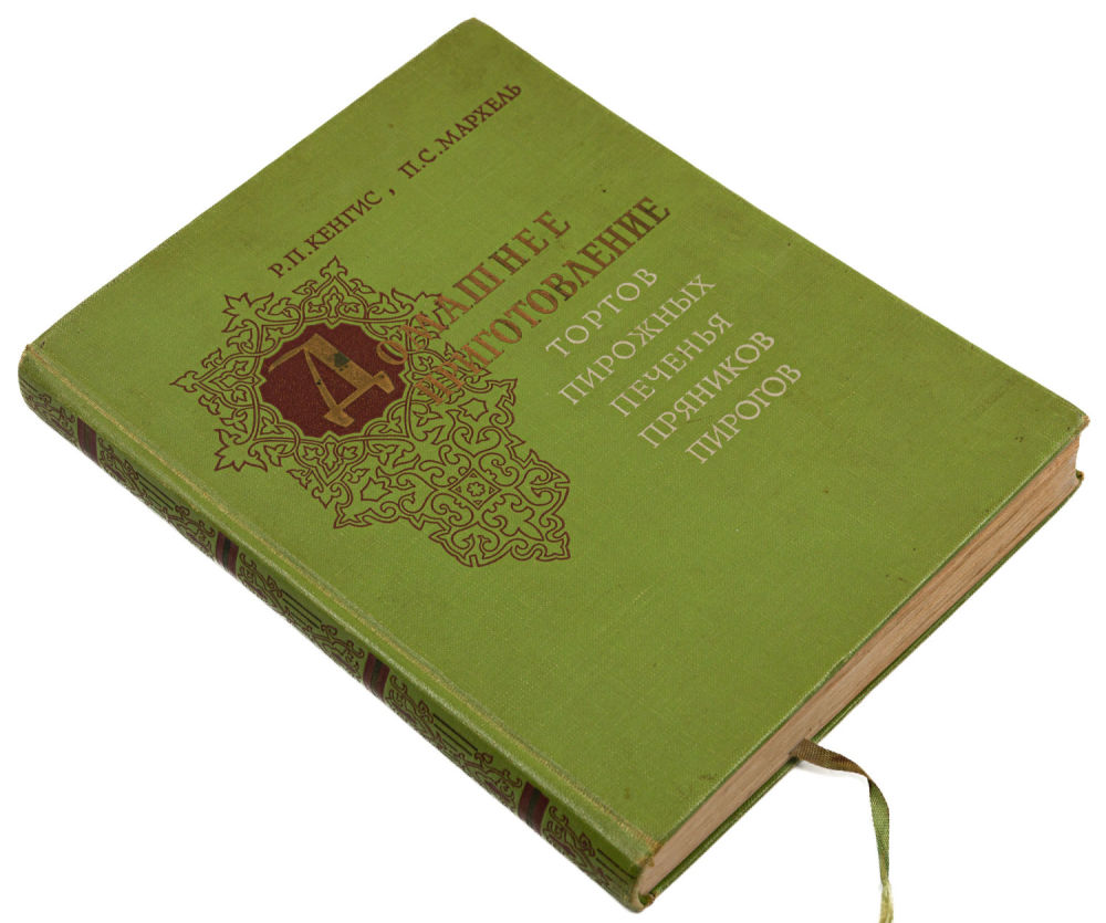 Переплет – издательский, цельноколенкоровый, орнаментированные форзацы с изображением конфет.
