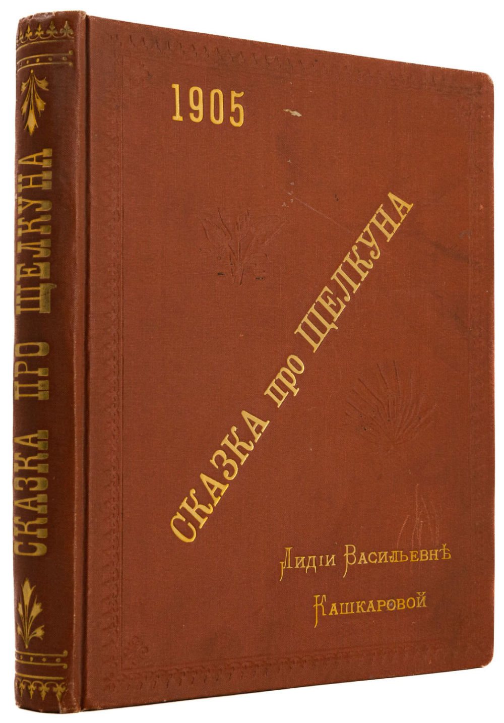 Золотым тиснением на верхней крышке: «1905 / Сказка про Щелкуна / Лидии Васильевне Кашкаровой».