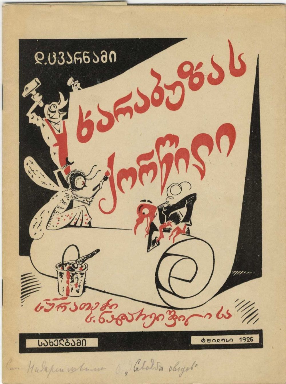 Карикатурная обложка и иллюстрации созданы одним из основателей грузинской карикатуры, художником-авангардистом Самсоном Дмитриевичем Надарейшвили (1895-1977).