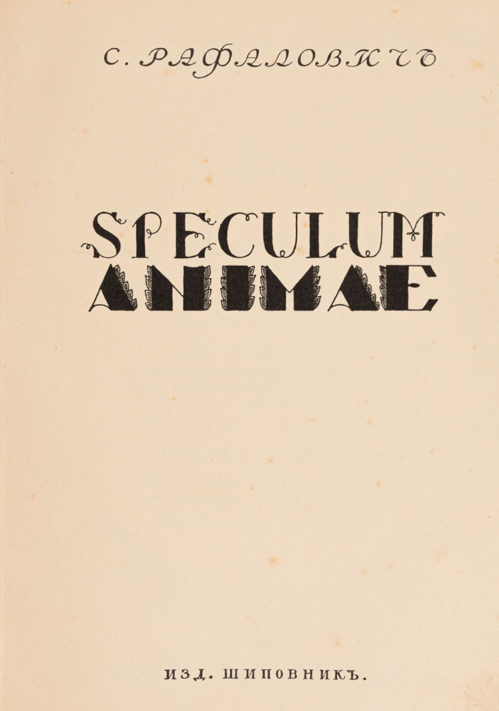 2) Рафалович С.Л. Spesulum animae: [стихотворения]. [СПб.]: Шиповник, 1911. – 99 с.: ил.; 24,5х19 см.