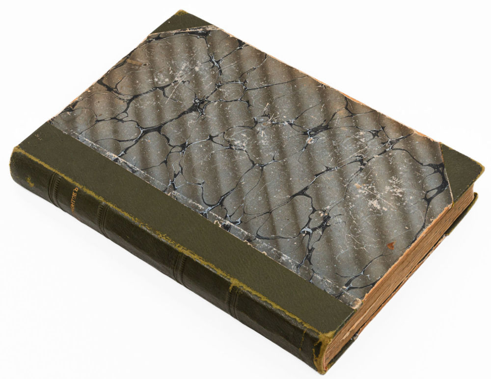 Переплёт – эпохи, владельческий; картон, «мраморная» бумага, корешок – коленкор.