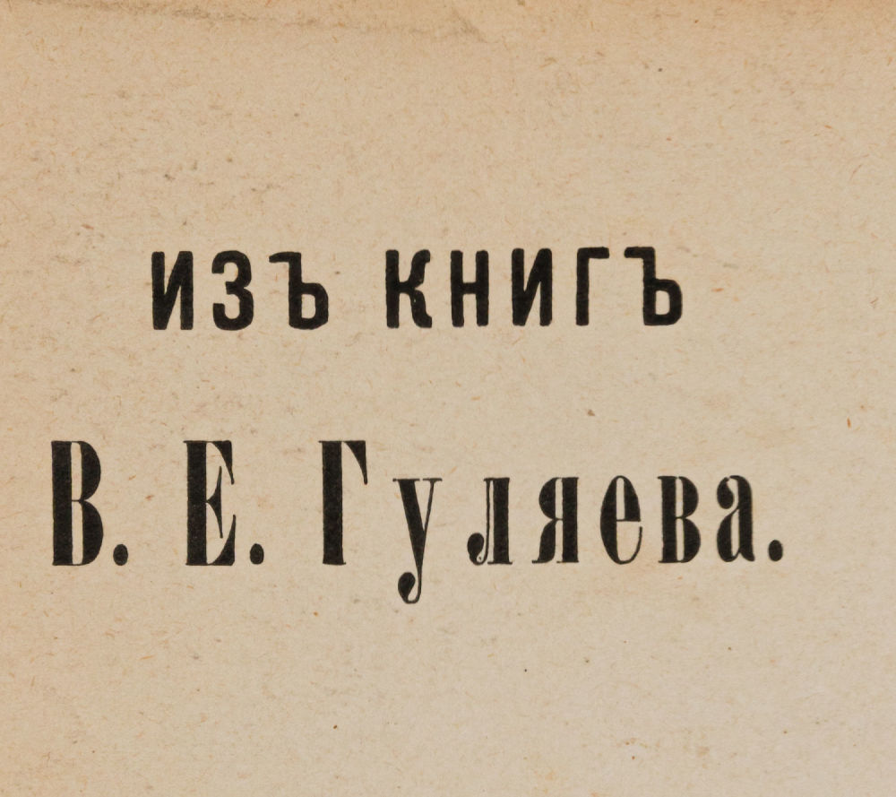 Бумажный экслибрис на форзаце: «Из книг В.Е. Гуляева».