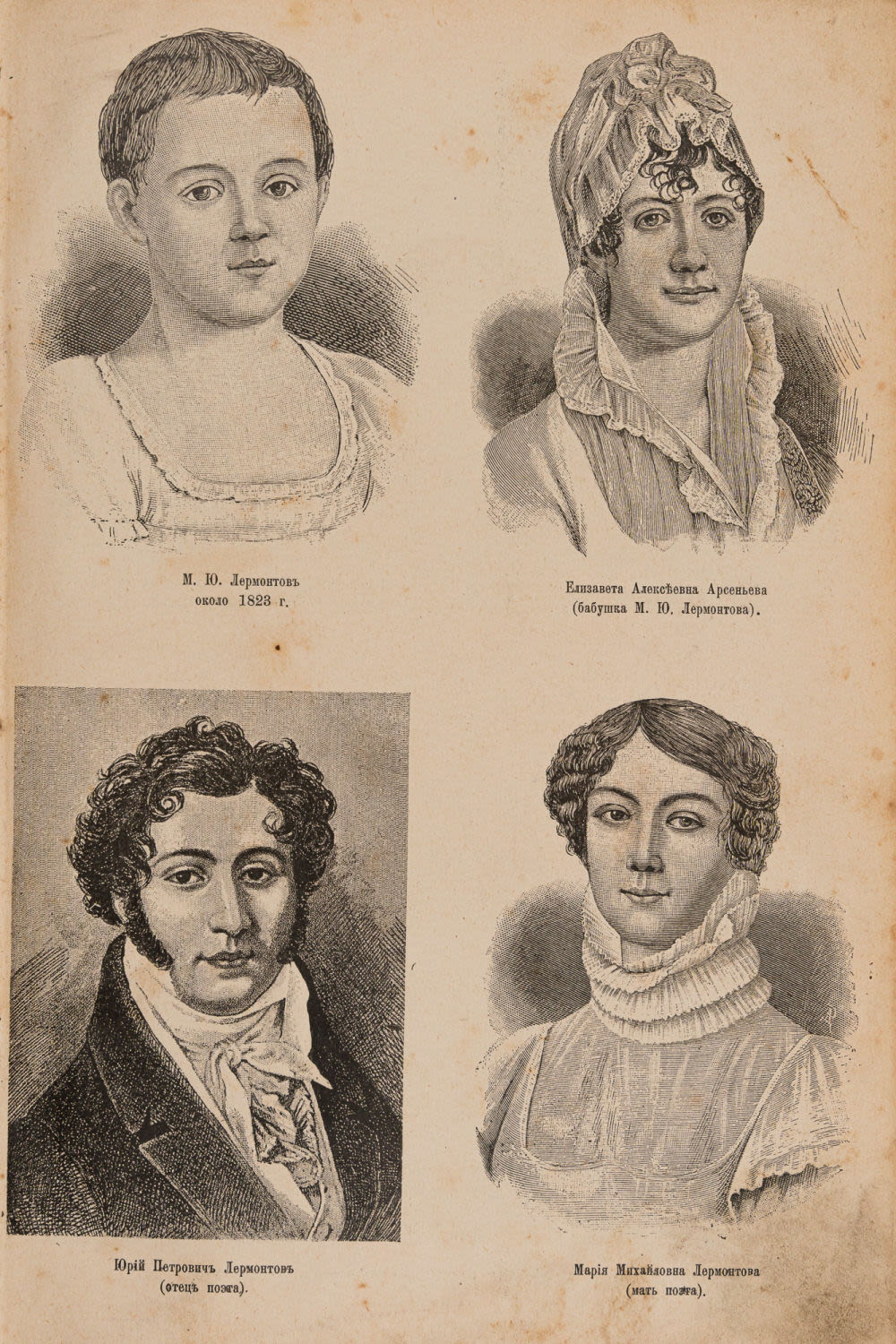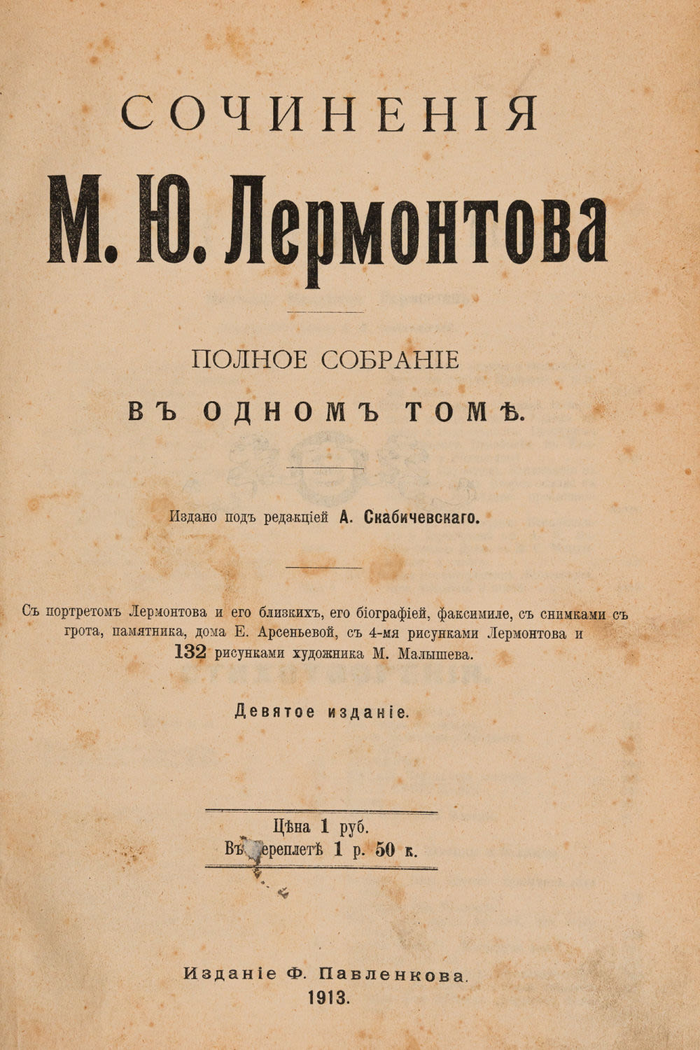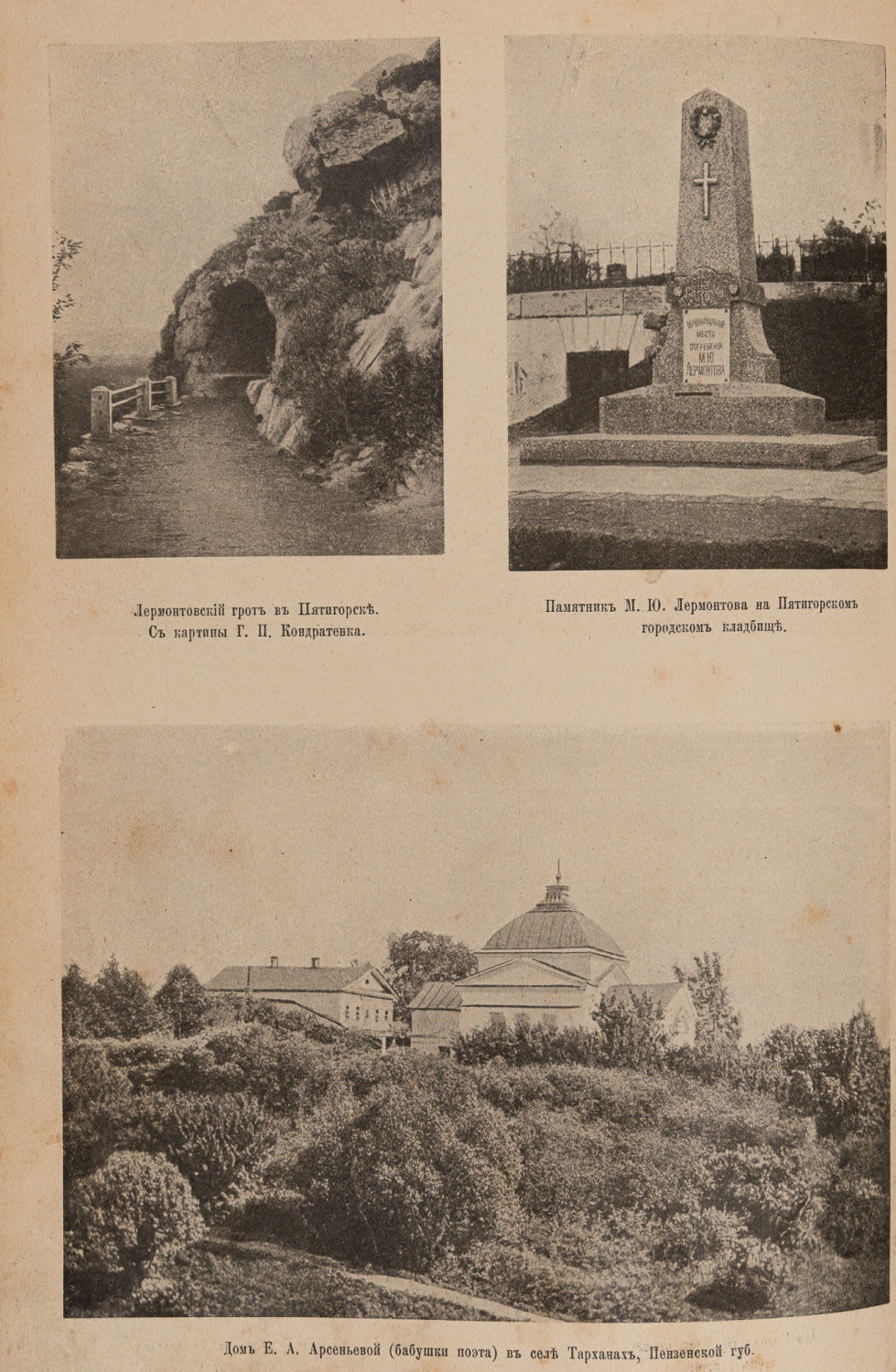 С портретом Лермонтова и его близких, его биографией, факсимиле, с снимками с грота, памятника, дома Е. Арсеньевой, с 4-мя рисунками Лермонтова и 132 рисунками художника М. Малышева.