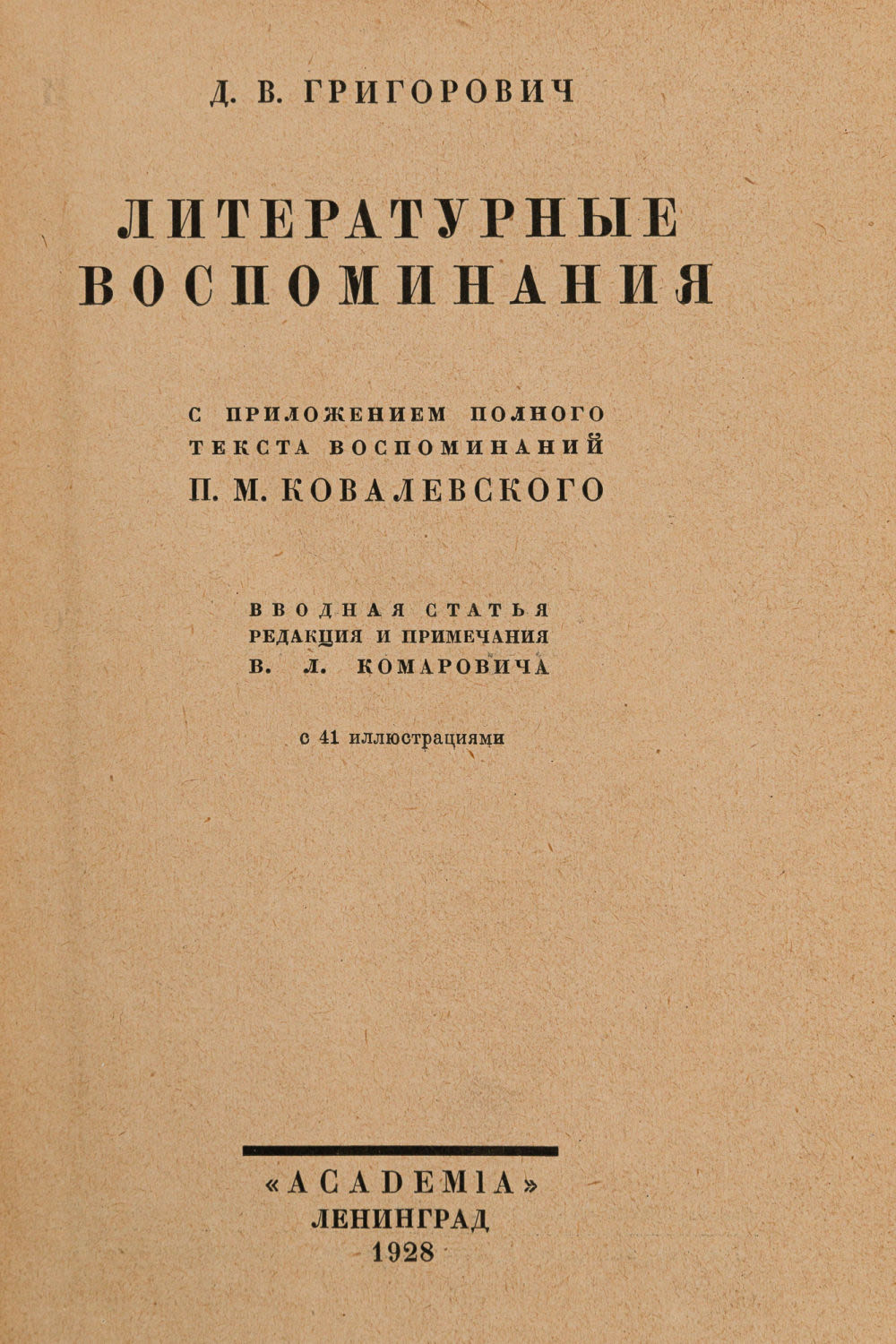 Ввод. ст., ред. и примеч. В.Л. Комаровича. Л.: Academia, 1928. — XXXII, 516 с.: ил., 1 л. портр.; 17,5х12,5 см. — (Памятники литературного быта).