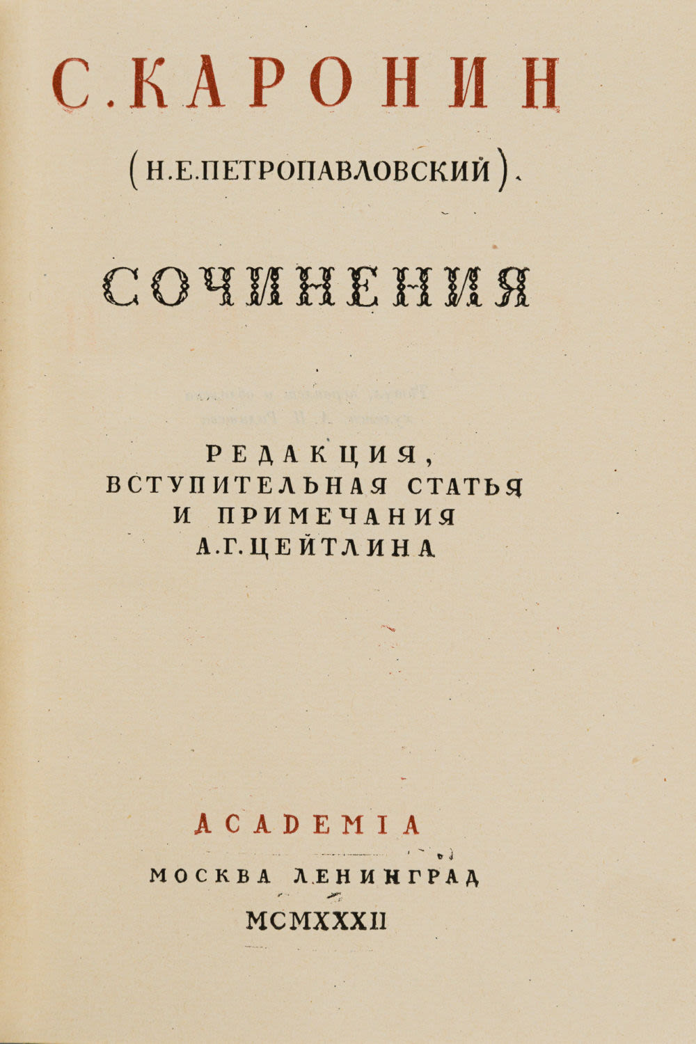 Ред., вступит. статья и примеч. А.Г. Цейтлина. М.; Л.: Academia, 1932. — 712 с., 1 л. портр.; 17,5х13 см. — (Русские писатели. XIX век).