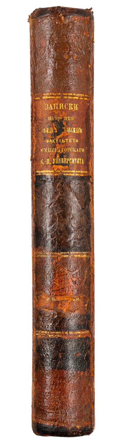 Сохранность – хорошая, потертости по краям переплета, реставрация и корешка (подкрашен), подклейка титульного листа вдоль корешка, редкие фоксинги, чит. пометы, утрата уголка С. 101, следы владельческой надписи, утрата фрагмента тит. л. приложения.