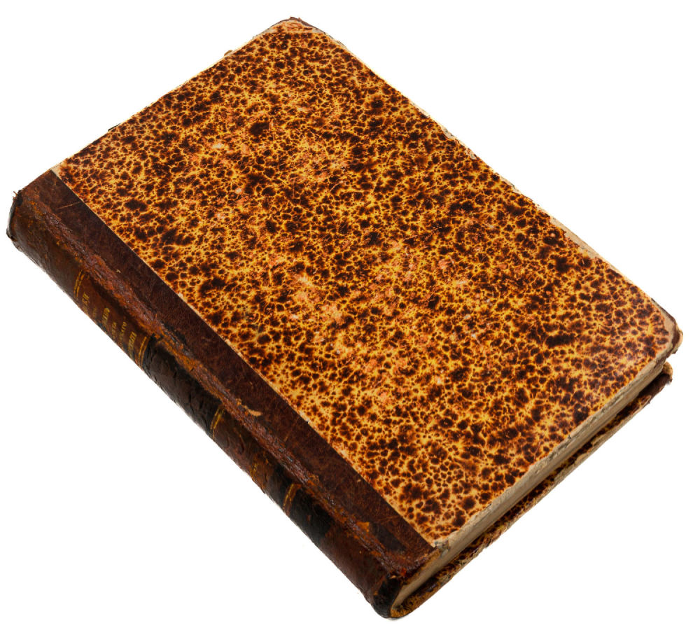 Переплет – владельческий, составной, крышки – картон, «мраморная» бумага, корешок и уголки – коленкор.