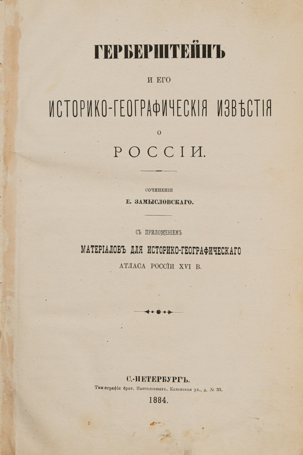 С приложением материалов для историко-географического атласа России XVI в. СПб.: тип. бр. Пантелеевых, 1884. – [2], IV, 563 с.; 2 с., [8] л. карт.; 24х17 см.