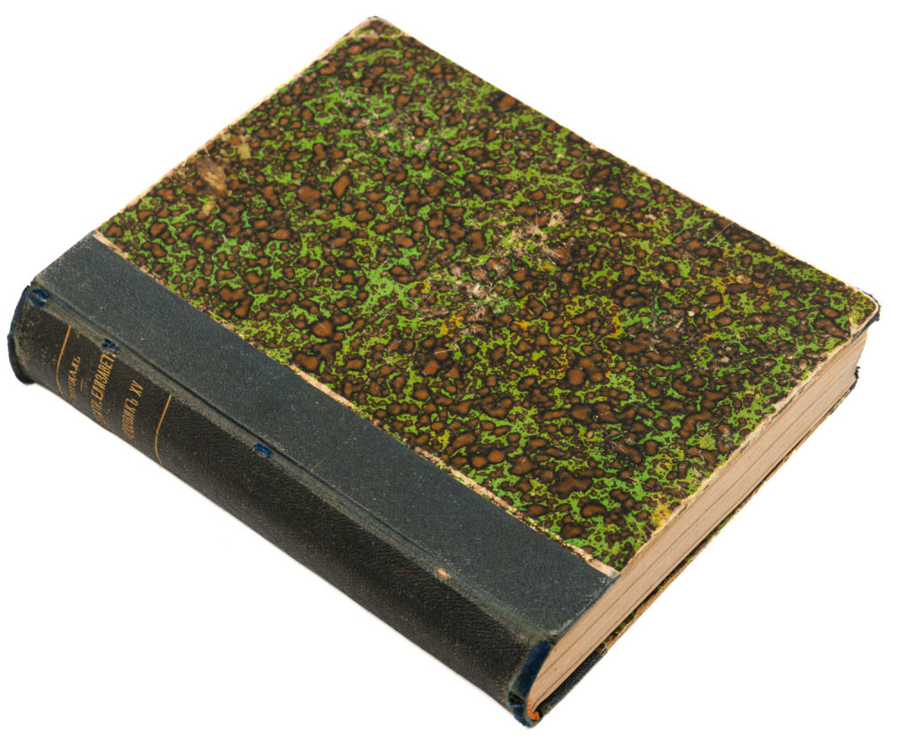 Переплет – владельческий, составной, крышки – картон, «мраморная» бумага, корешок и уголки – коленкор. Издательская иллюстрированная обложка сохранена.