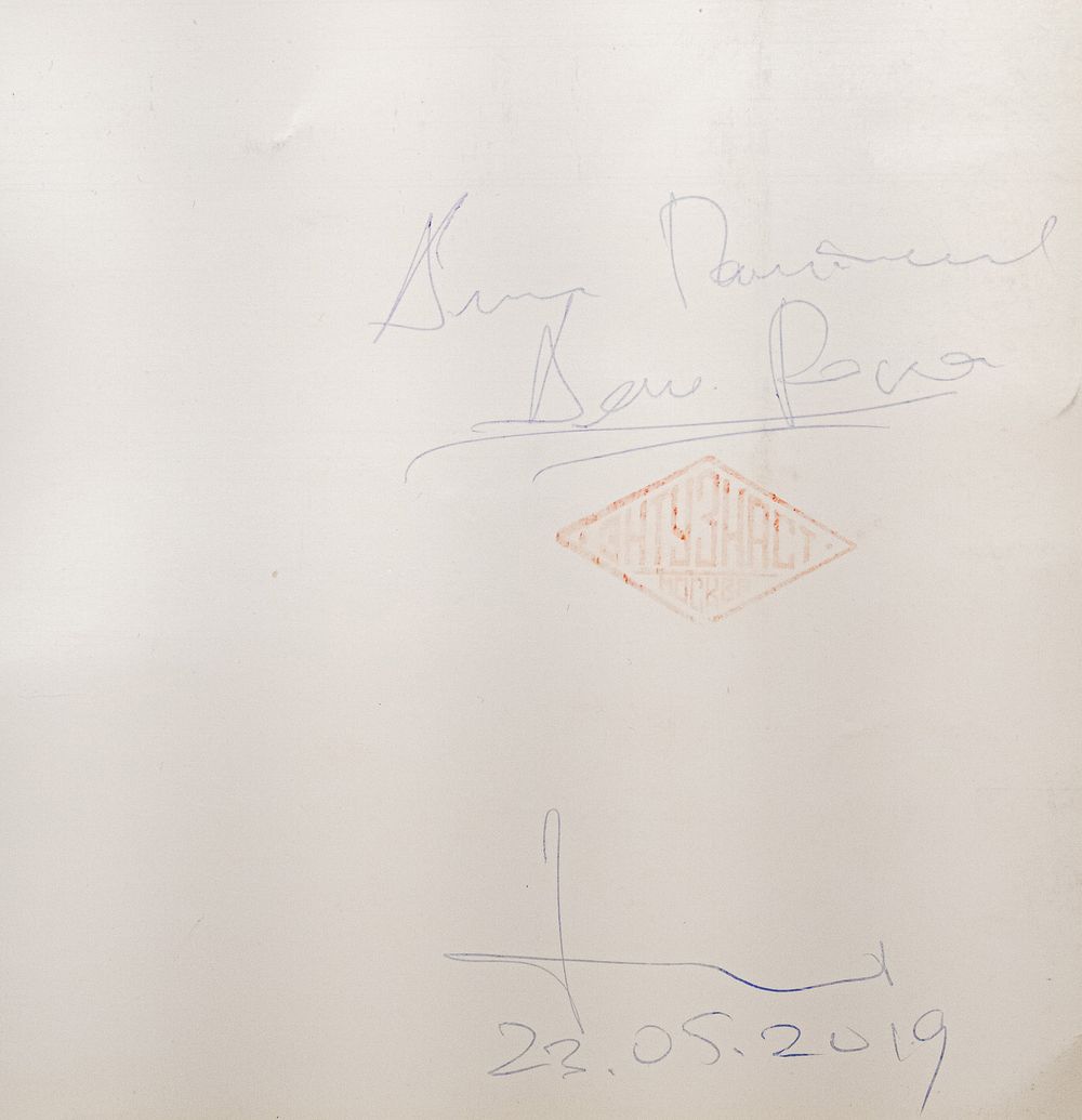 Автограф Д. Пантюшина и штамп мотокафе «Энтузиаст» на обороте плаката.