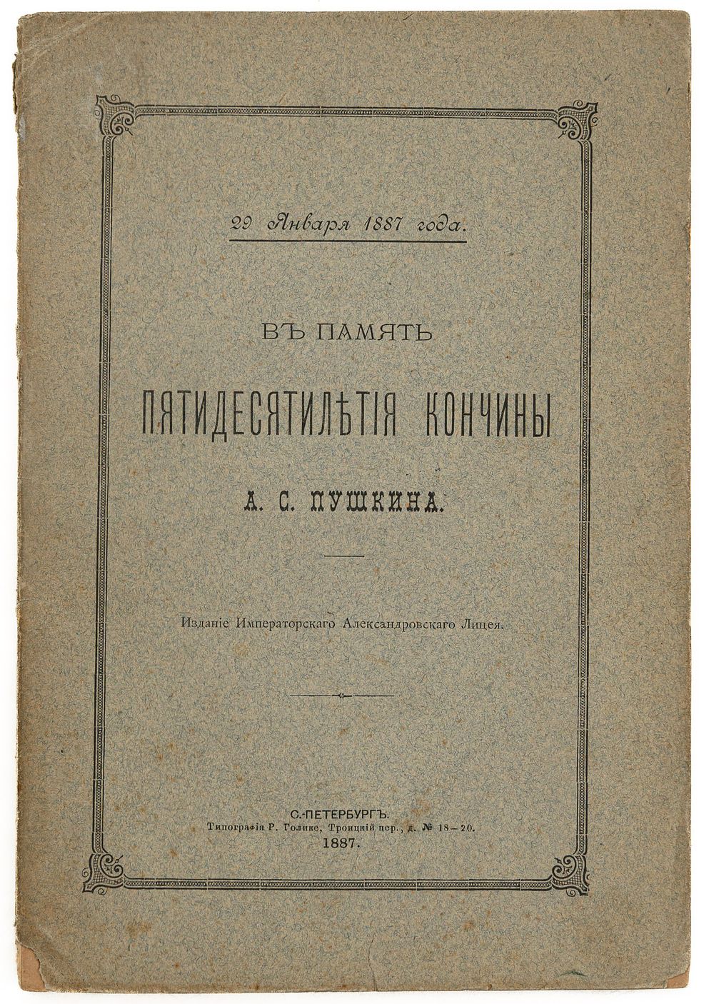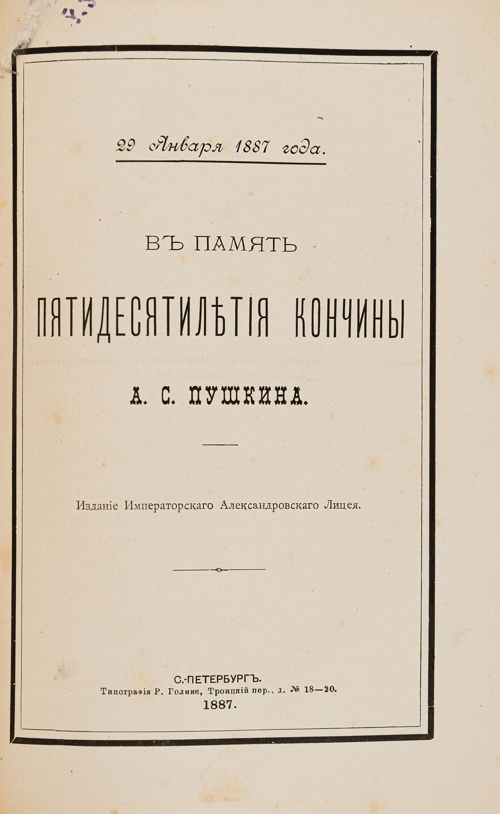 Издание Имп. Александровского лицея. СПб.: Тип. Р. Голике, 1887. – [2], II, 53 с., [1] л. фронт. (портр.), [5] л. факс.; 21,3х14,5 см.