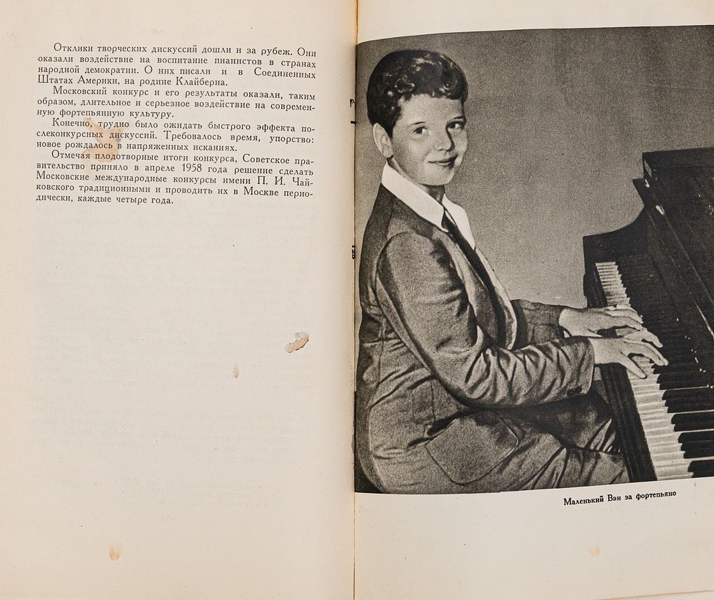 В издание вложены газетные вырезки со статьями, посвященными Вэну Клайберну, а также фотография пианиста.