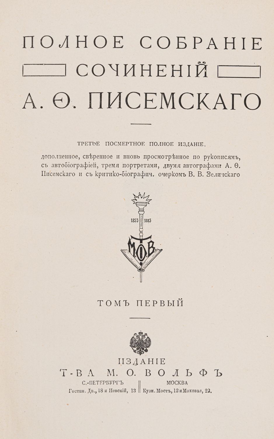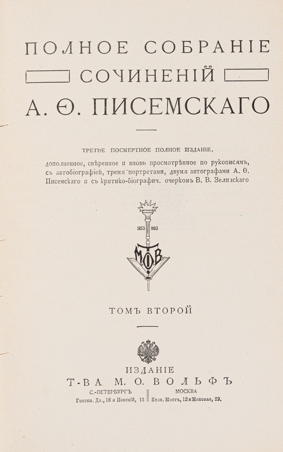 С автобиографией, тремя портретами, двумя автографами А.Ф. Писемского и с критико-биографич. очерком В.В. Зелинского. — 3-е посмертное полное изд. СПб.; М.: Изд. Т-ва М.О. Вольф, [1912].