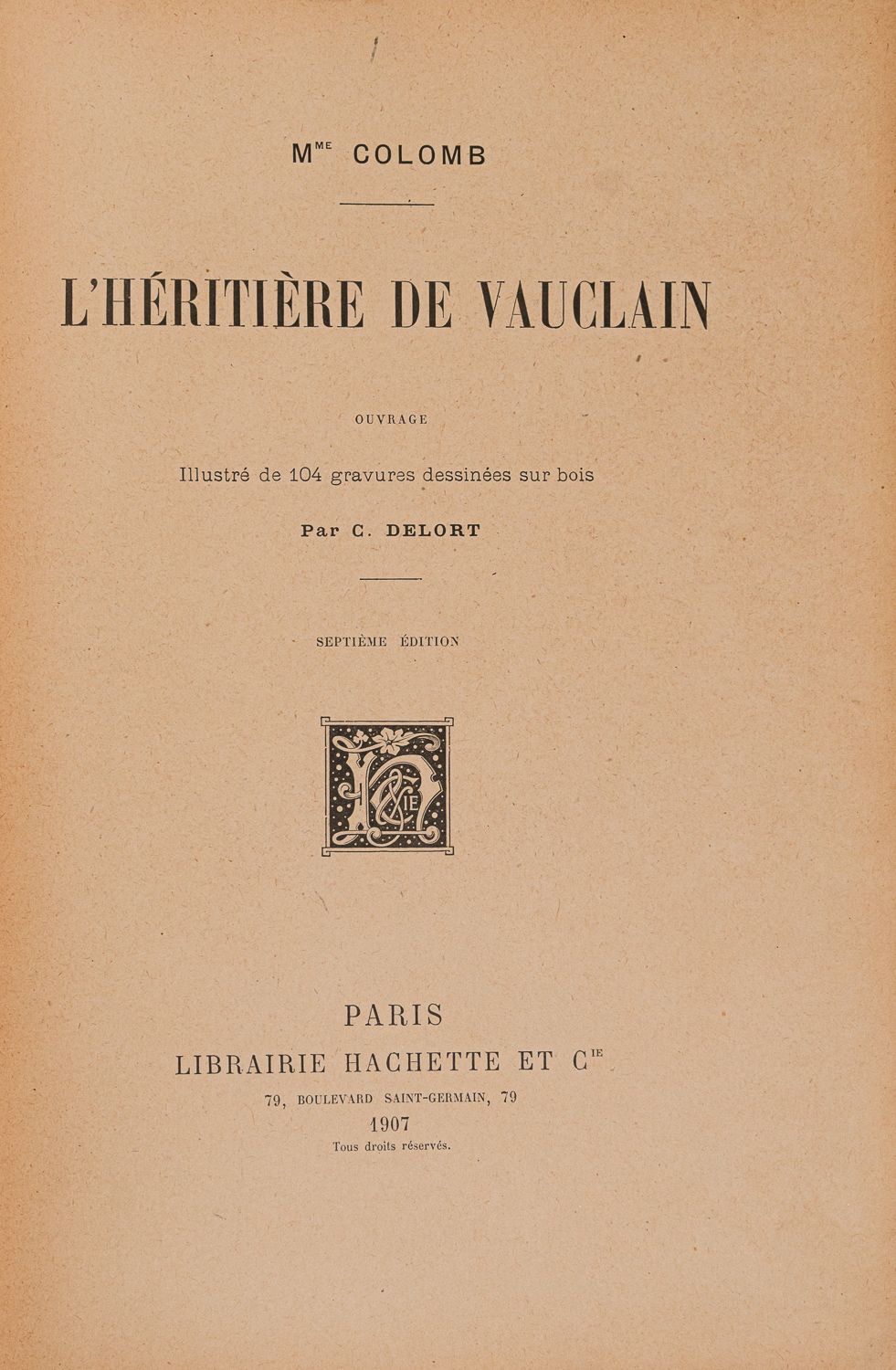Colomb J. L’Héritière de Vauclin. Paris: Hachette, 1907. 7 изд. – 333 [2] с.: ил.; 27х18 см.