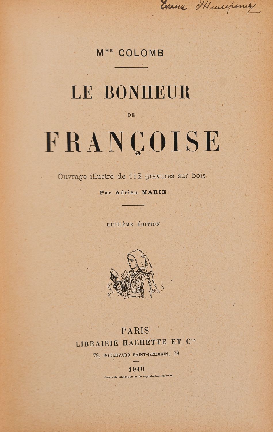 Colomb J. Le bonheur de Françoise. Paris: Hachette, 1910. 10 изд. – 254 [1] с.: ил.; 23,5х16 см.