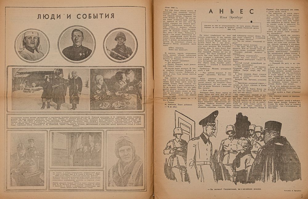 Сохранность — очень хорошая. Рисунок Г. Балашова на обложке. Издание военного времени, вкл. прижизненные публикации Ильи Эренбурга (глава «Аньес» из романа «Падение Паарижа») и Евгения Петрова — отв.ред. Огонька («Катя»).