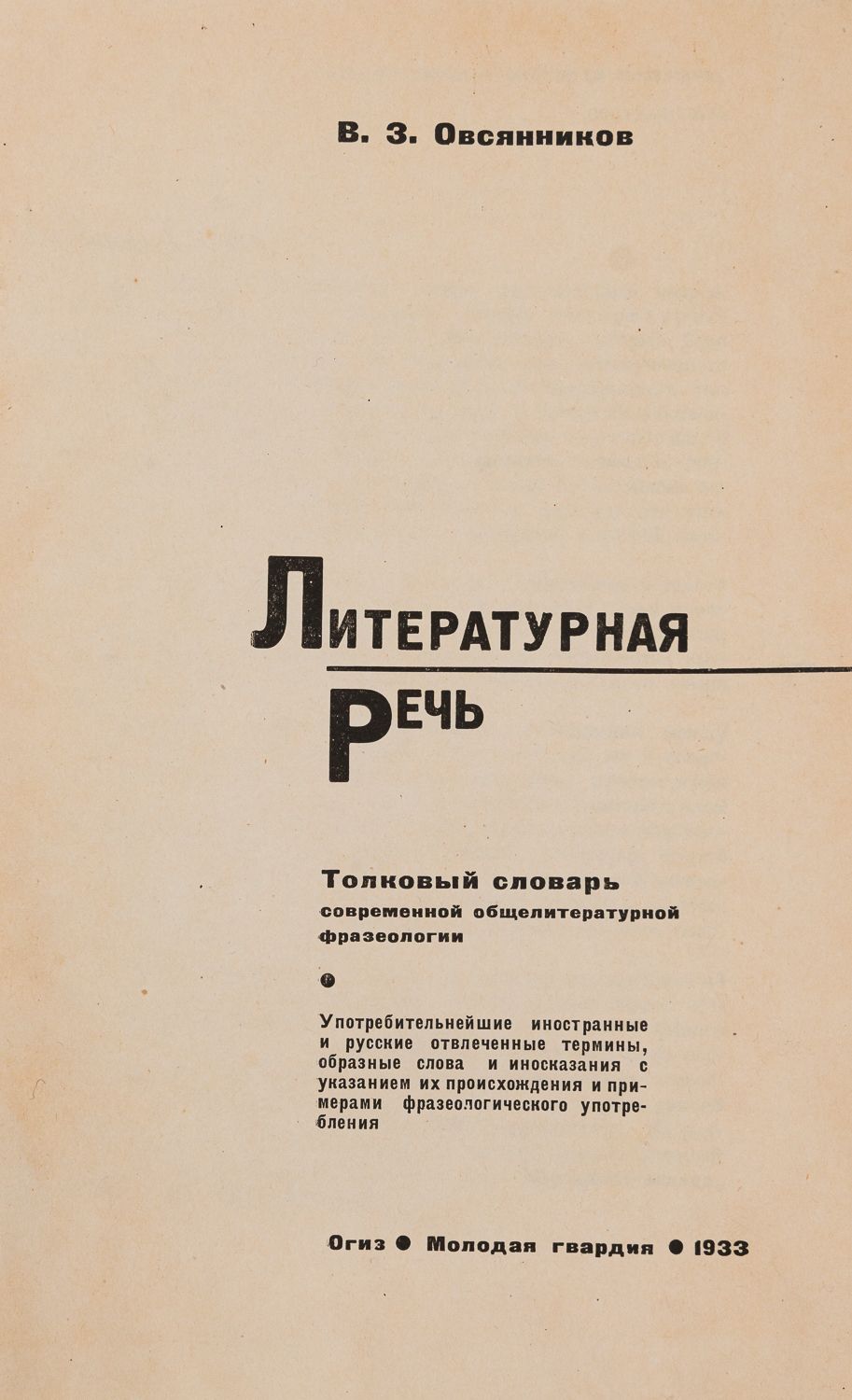 Толковый словарь современной общелитературной фразеологии. М.: Молодая гвардия, 1933. – 358 [3] с.; 22х15 см.