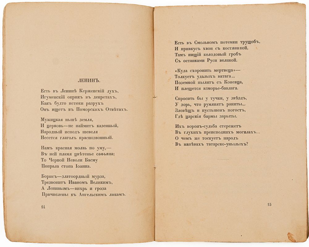 Провенанс: экземпляр из б-ки советского библиофила, тульского краеведа и коллекционера книжного наследия С. Есенина и его круга Валерия Васильевича Пилипенко (1943-2015).