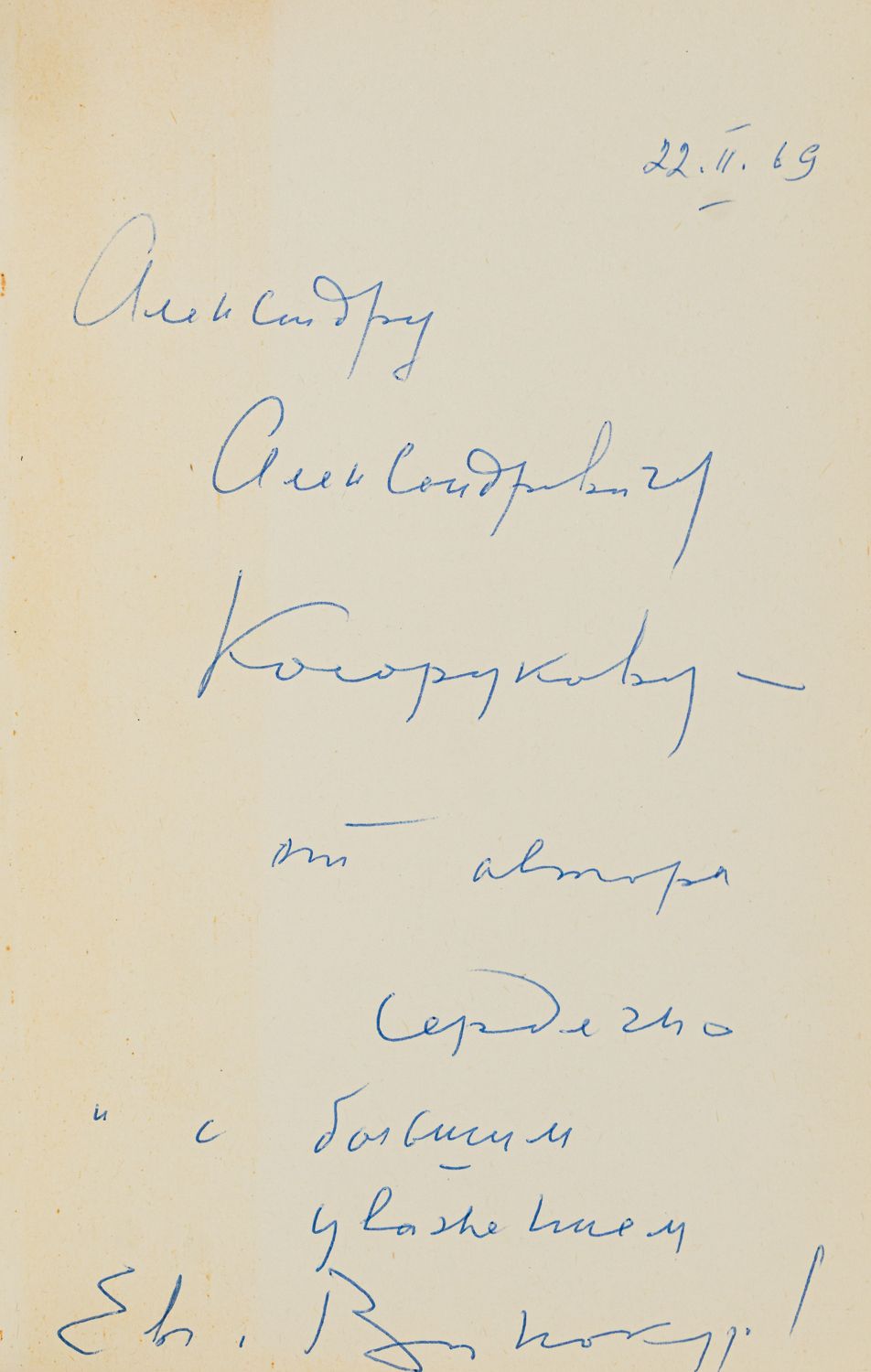 Автограф Александру Косорукову на форзаце: «Александру Александровичу Косорукову – от автора / Сердечно и с большим уважением / [Подпись]».