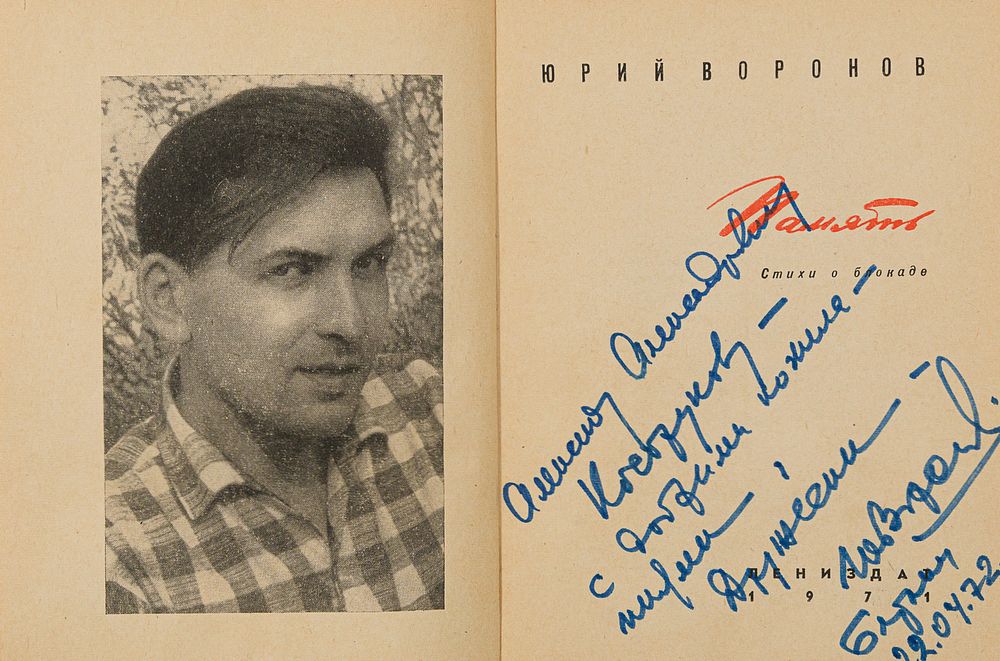 Автограф Александру Косорукову на титульном листе: «Александру Александровичу Косорукову – С добрыми пожеланиями, дружески [Подпись?]. [Нрзб.] 22.04.72.»