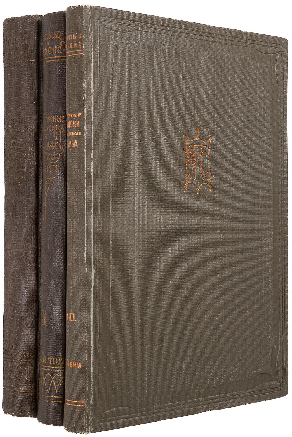 Т. 3: Мелкие загрязнения переплета. Потертости на корешке. Пятно на форзаце. Незначительные загрязнения С. 195. Залом на нахзаце.