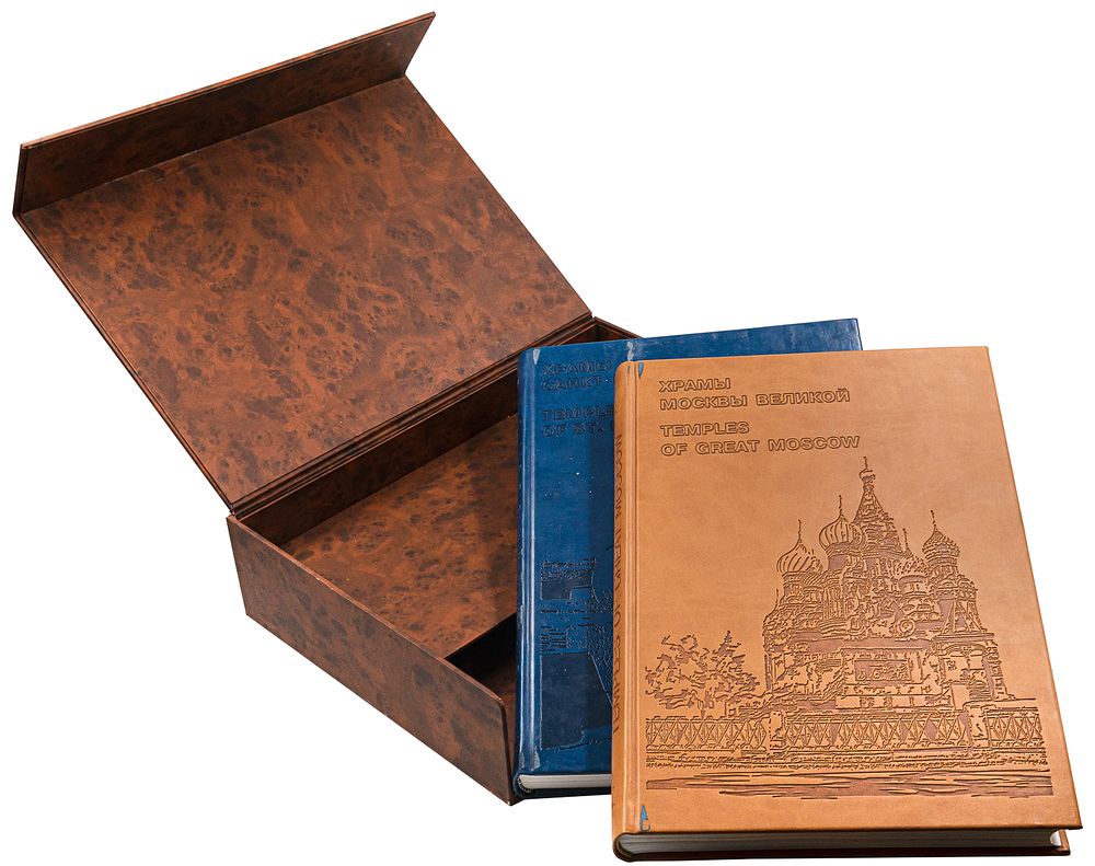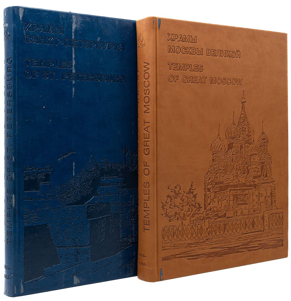 Подарочное издание двух книг из серии «Храмы православного мира». Обе книги из серии были лично благословлены Святейшим Патриархом Московским и всея Руси Алексием II. Книги содержат комплексное описание храмовой архитектуры двух столиц, проиллюстрированное фотографиями.
