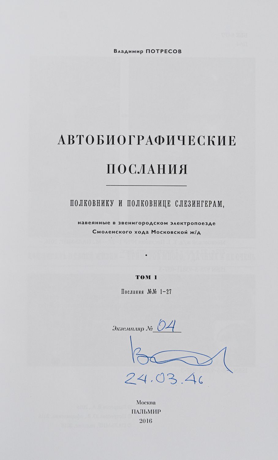 Навеянные в звенигородском электропоезде Смоленского хода Московской ж/д. М.: Пальмир, 2016. – 222 с.: ил., [22] л. ил. + 1 электрон. опт. диск.; 28,5х21 см.
