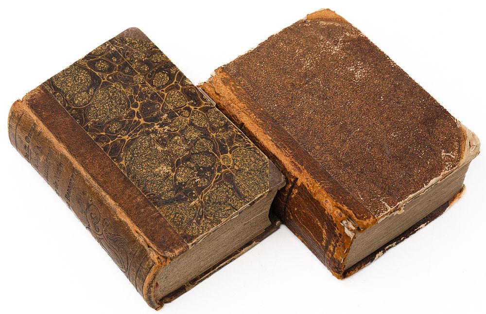 Сохранность — хорошая, загрязнения и потертости переплета, частичная утрата фрагментов кожи корешка, незначительные разводы от влаги по краям книжного блока.