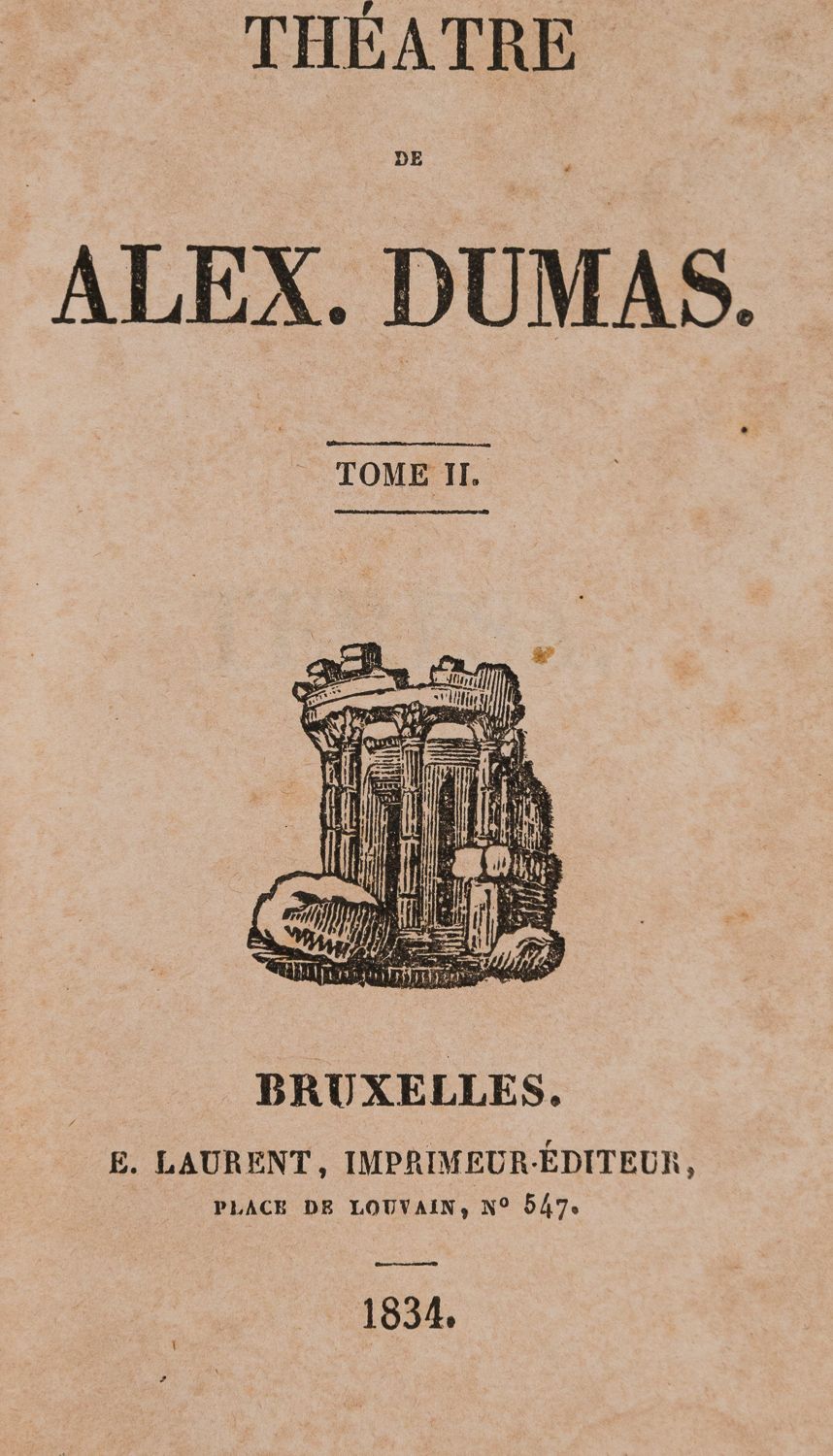 2) Дюма А. Театр. Брюссель: Э. Лоран, типограф-издатель, 1834. Т. 2.