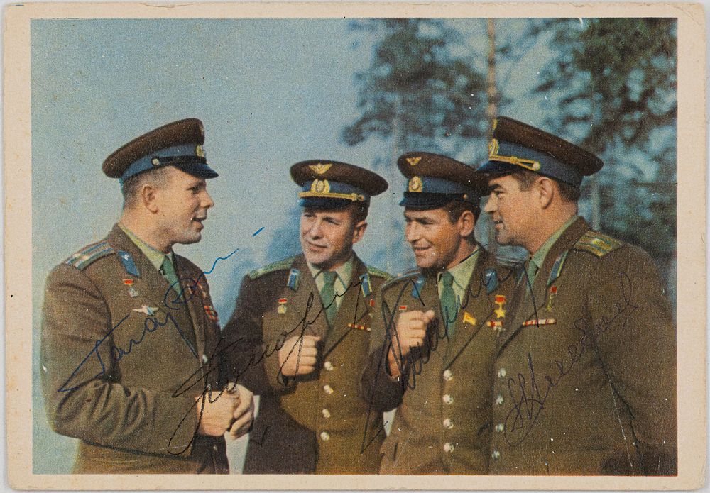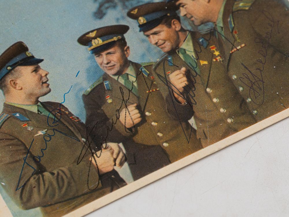 Автографы-подписи на лицевой стороне изображения.