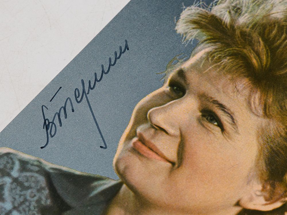 Автограф-подпись на лицевой стороне изображения.