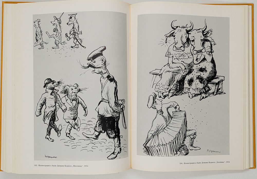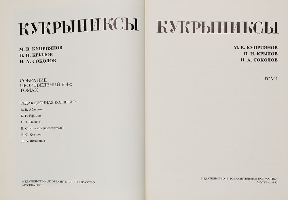 Наиболее полное и систематизированное издание наследия легендарного творческого коллектива Кукрыниксов (Михаила Куприянова, Порфирия Крылова и Николая Соколова). Альбом включает произведения всех основных жанров, в которых работали Кукрыниксы: политическую и бытовую карикатуру, плакат (включая знаменитые «Окна ТАСС» военных лет), станковую живопись, иллюстрацию к произведениям классической и советской литературы (Гоголь, Салтыков-Щедрин, Чехов, Ильф и Петров), театрально-декорационное искусство и портрет.