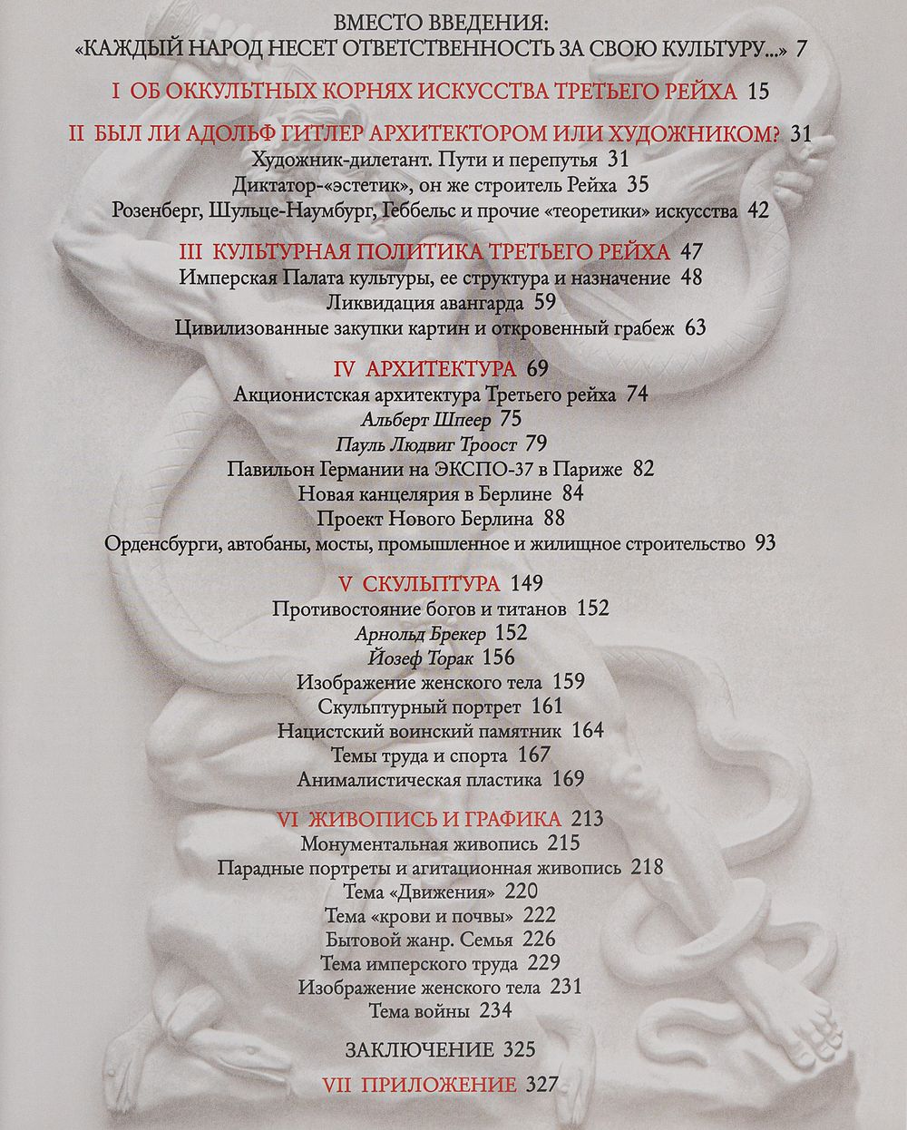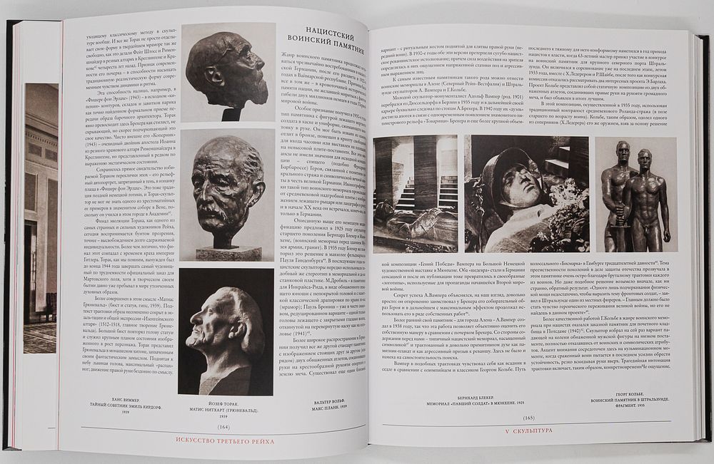 Издание представляет собой фундаментальное исследование официального искусства нацистской Германии, осуществлённое в формате богато иллюстрированного альбома. Книга анализирует три основные сферы художественной политики Третьего рейха, рассматривая их как целостную эстетическую систему, подчинённую целям тоталитарной идеологии. Автор исследует, как нацистская доктрина формировала каноны в архитектуре (гигантомания А. Шпеера, неоклассицизм), скульптуре (культ атлетического тела, монументализм) и живописи (героический реализм, китч, антимодернизм).