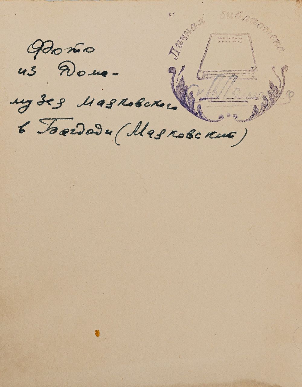 Владельческий шт. на обороте и запись: «Фото из Дома-музея Маяковского в Багдати (Маяковский)».