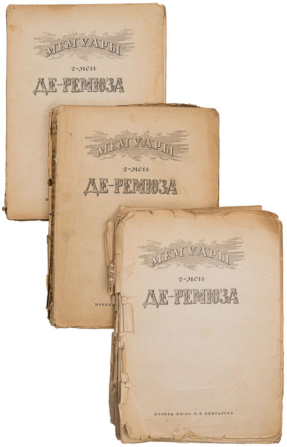 Сохранность — удовлетворительная, надрывы обложкек и по краев страниц, обложки частично отделены, блоки распадается на тетради.